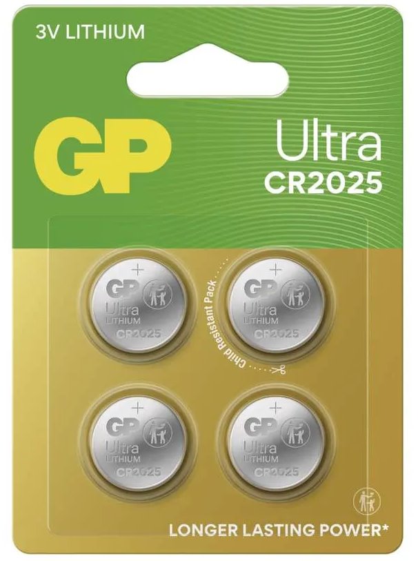 GP lithiová knoflíková baterie CR1025 kapacita 30 mAh napětí 3 V typ GP CR1025 provozní teplota -20 °C až +60 °C počet nabíjecích cyklů nenabíjecí hmotnost 0,7 g max. skladovatelnost 10 let značka GP rozměr 10,0 × 2,5 mm