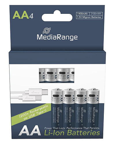 MediaRange Nabíjecí USB-C Li-Ion baterie, Mignon AA | 1,5 V | 1 400 mAh, balení 4 ks