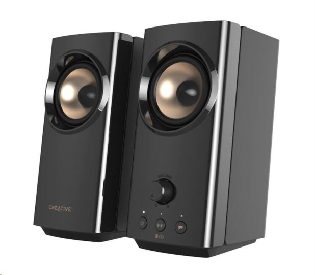 Kompaktní stolní reproduktory Hi-Fi 2.0 s funkcí Clear Dialog a Surround od Sound Blaster pro počítače a notebooky