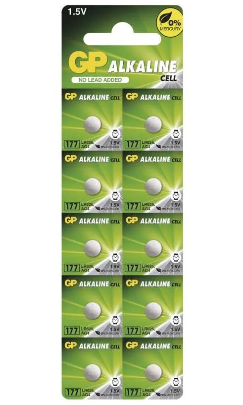 Alkalická knoflíková baterie GP 177F (LR626), 10 ks