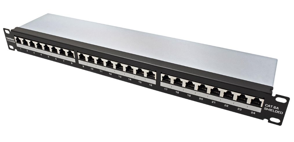 Stíněný, 24-portový patchpanel kategorie 6a pro montáž do 19“ rozvaděče (výška 1U).