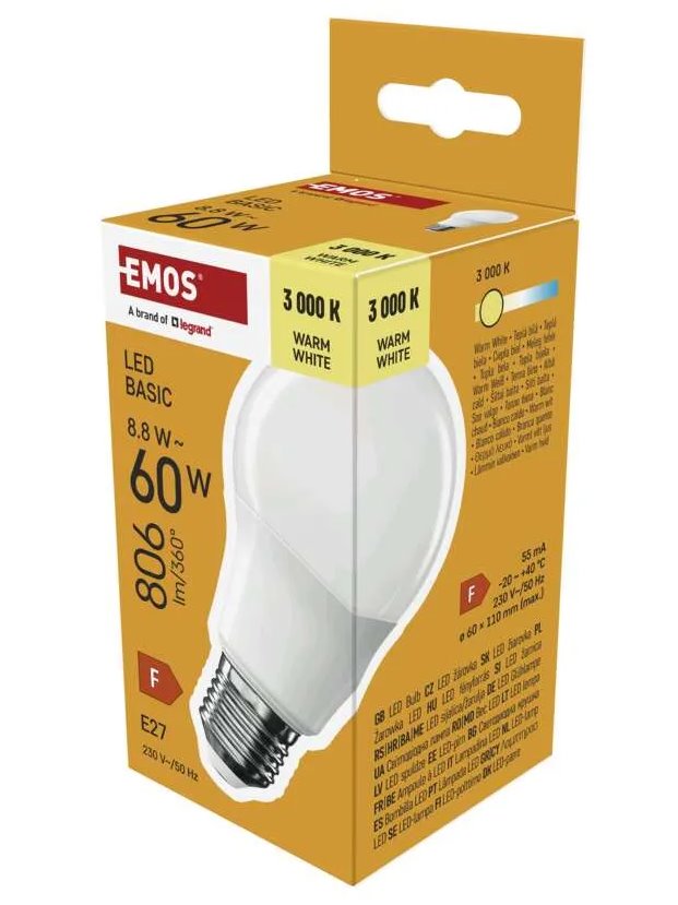 LED žárovka Basic A60 / E27 / 8,8 W (60 W) / 806 lm / teplá bílá