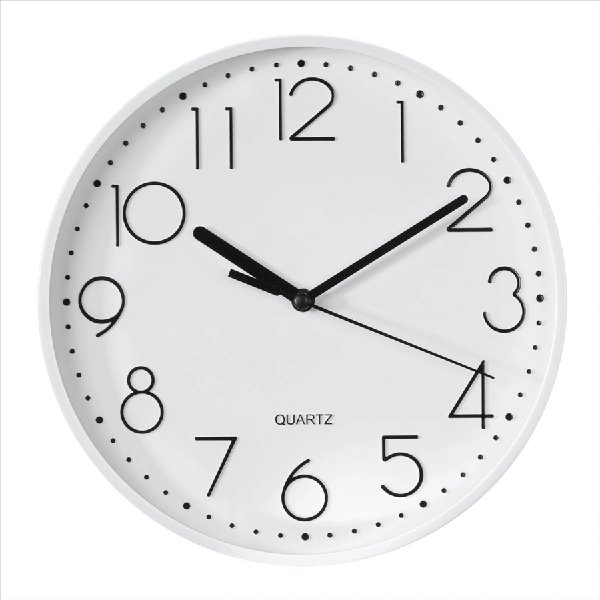 - nástěnné hodiny s analogovým zobrazením času - plynulý pohyb sekundové ručičky pro tichý chod bez hlasitého tikání - bílý ciferník s černými arabskými číslicemi - hodinová, minutová a sekundová ručička - materiál obruby/krytu: plast/sklo - rozměry (průměr x hloubka): 22 x 3,5 cm - hmotnost: 315 g - napájení: 1x AA Mignon (součást balení) - barva ciferníku/obruby: bílá/bílá