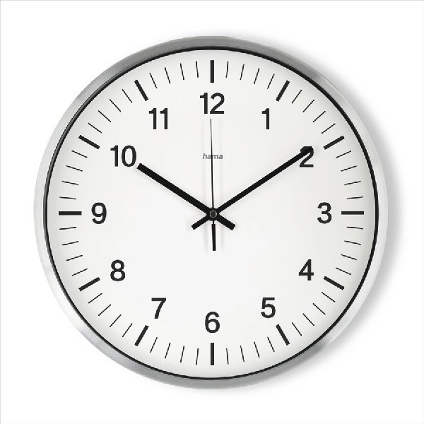 - hodiny řízené rádiovým signálem DCF (automatické nastavení času podle nejpřesnějších hodin světa) - analogové zobrazení času - velký bílý ciferník s černými arabskými číslicemi - hodinová, minutová a sekundová ručička - průměr: 35 cm - hmotnost: 773 g - napájení: 1x AA Mignon (součást balení) - materiál obruby/ krytu: broušený hliník/ sklo - barva obruby/ ciferníku: stříbrná/ bílá