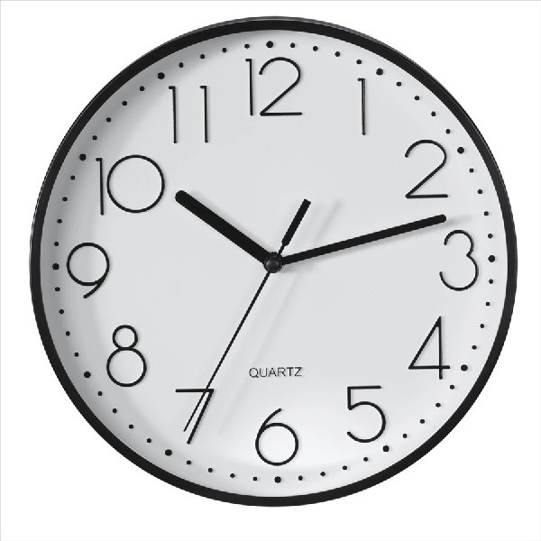 - nástěnné hodiny s analogovým zobrazením času - bílý ciferník s černými arabskými číslicemi - hodinová, minutová a sekundová ručička - plynuly pohyb sekundové ručičky pro tichý chod bez hlasitého tikání - materiál obruby/krytu: plast/sklo - rozměry: hloubka: 3,5 cm, průměr: 22 cm - hmotnost: 315 g - napájení: 1x AA Mignon (součást balení) - barva ciferníku/obruby: bílá/černá
