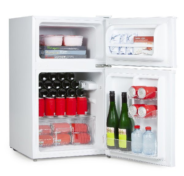 Menší lednice v bílé barvě s vnitřním prostorem rozděleným na 61 litrů clhadící zóny a 26 litrů mrazáku. Takové provedení je ideálnní pro studenty, pokojů pro hosty a všude tam kde není potřeba velké lednice a mrazáku. Svou výškou 85 cm se lednice pohodlně vejde do většiny kuchyní i jako částečná vestavba. Vnitřní prostor lednice je rozdělený skleněnou policí, kterou lze vyjmout a ve dveřích lednice jsou 4 transparentní přihrádky na nápoje a růzmé menší potraviny apod. Všechny přihrádky ve dveřích lze vyjmout a změnit tak vnitřní uspořádání dle potřeby. Možnost lepšího uspořádání potravin v mrazáku pak napomáhá přihrádka ve dvířkách mrazáku do které lze umístit například krabičku s potravinami o velikosti až 31x5x14 cm