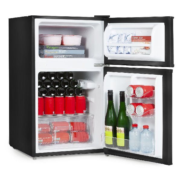 Menší lednice v černé barvě s vnitřním prostorem rozděleným na 61 litrů clhadící zóny a 26 litrů mrazáku. Takové provedení je ideálnní pro studenty, pokojů pro hosty a všude tam kde není potřeba velké lednice a mrazáku. Svou výškou 85 cm se lednice pohodlně vejde do většiny kuchyní i jako částečná vestavba. Vnitřní prostor lednice je rozdělený skleněnou policí, kterou lze vyjmout a ve dveřích lednice jsou 4 transparentní přihrádky na nápoje a růzmé menší potraviny apod. Všechny přihrádky ve dveřích lze vyjmout a změnit tak vnitřní uspořádání dle potřeby. Možnost lepšího uspořádání potravin v mrazáku pak napomáhá přihrádka ve dvířkách mrazáku do které lze umístit například krabičku s potravinami o velikosti až 31x5x14 cm