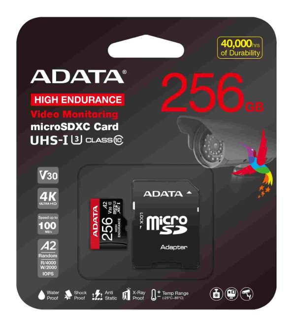 ADATA MicroSDXC karta 256GB High Endurance UHS-I C10 V30 A2 (R:100/W:85 MB/s) + SD adaptér