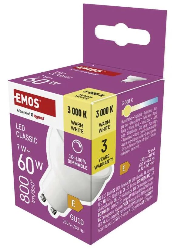 LED žárovka Classic MR16 / GU10 / 7 W (60 W) / 800 lm / teplá bílá / stmívatelná