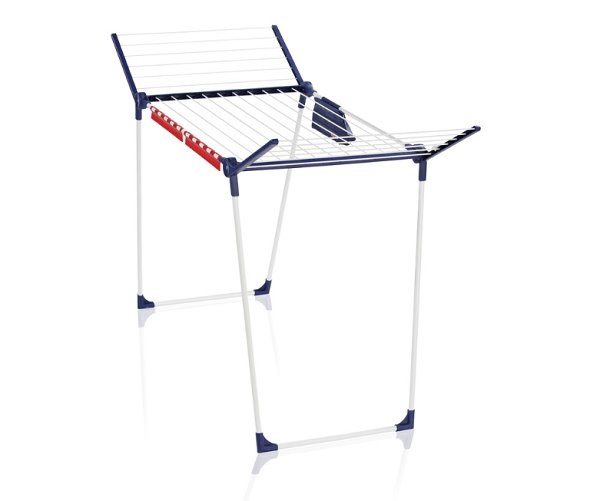 ideální pro vnitřní i venkovní použití 2x EASY Clipy na sušení drobného prádla výška sklápěcích bočnic 105 cm taštička na kolíčky 18 m sušíci plochy = až na 2 pračky prádla výška sklápěcích bočnic 105 cm materiál: kov/plast