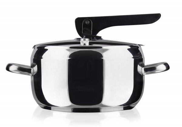 Nerezový tlakový hrnec 3,5 l s pákovým uzávěrem, průměr 20,8 cm, výška 13 cm, nerez 18/0, tloušťka stěny 0,6 mm, 2 ventily, silné sendvičové dno. Víko obsahuje dva ventily, hlavní pracovní ventil a pomocný / bezpečnostní ventil. Tlakový hrnec je určen pro rychlou přípravu pokrmů a lze jej používat na všechny typy varných desek vč.indukce. Víko tlakového hrnce obsahuje hlavní pracovní ventil a pomocný ventil pro případ zanešení pracovního ventilu, což činí hrnec max.bezpečný ! Hrnec je vyroben z pevného materiálu, má silné dno a lze ho používat na všechny typy varných desek