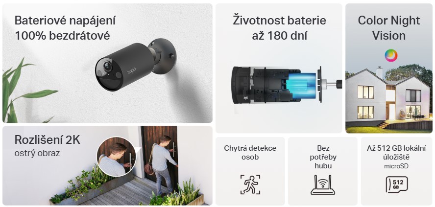 •Baterie s dlouhou životností: Díky až 180denní výdrži baterie na jedno nabití minimalizuje Tapo C411 jakoukoli údržbu.