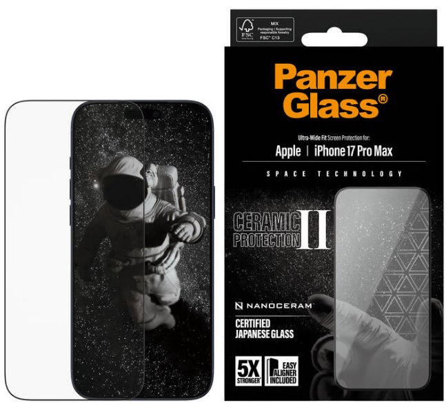 PanzerGlass Ceramic II na Apple iPhone 17 Pro Max s instalačním rámečkem