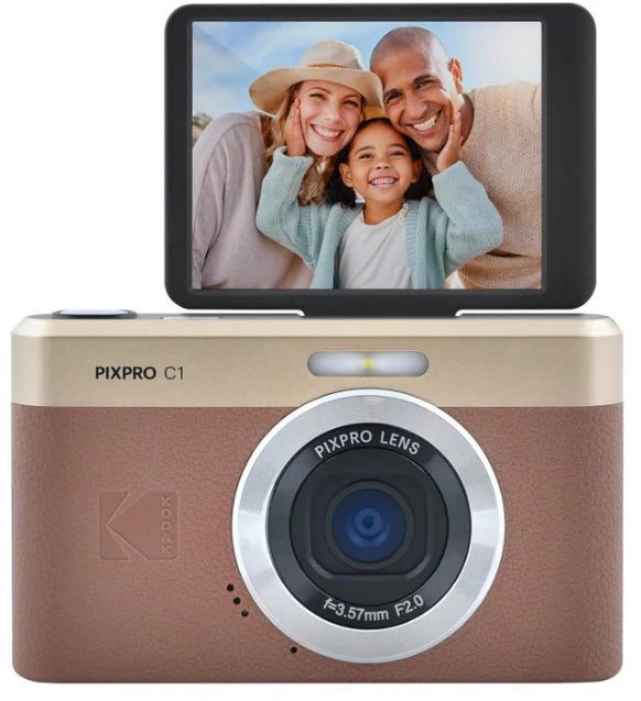 Kodak C1 Pixpro kombinuje jednoduché ovládání, všestranné funkce a atraktivní retro design, který zaujme na první pohled. Díky nastavitelnému LCD displeji jej využijete i pro selfie nebo natáčení vlogů. Kompaktní rozměry 103 × 60 × 20,3 mm a váha pouhých 118 g z něj dělají skvělého společníka na výlety, rodinné oslavy i dovolené.