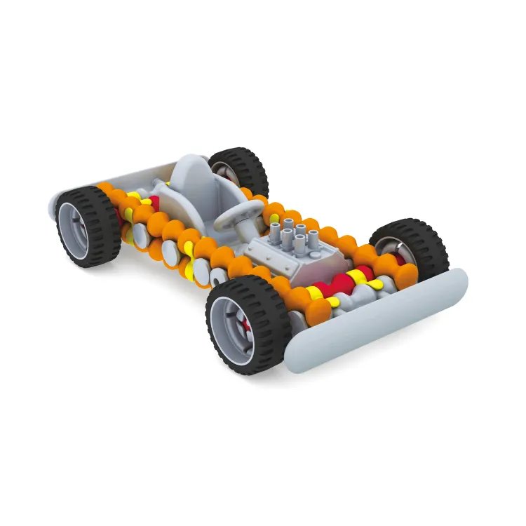 Ze stavebnice Playstix Clips si můžete snadno postavit více než 20 různorodých modelů, např. domeček, pyramidu nebo různé druhy vozidel s pevnými kolečky.