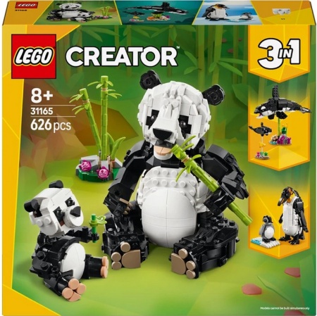 Děti od 8 let se podělí o lásku a zábavu se 3 zvířecími rodinkami se stavebnicí Divoká zvířata: Pandí rodinka (31165). Model obsahuje dospělou pandu s pohyblivou tlamou, hlavou, krkem a tlapkami a roztomilé pandí mládě s bambusovým výhonkem, na kterém si může pochutnat.
