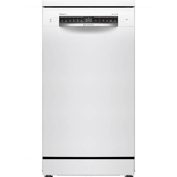 s předním panelem • šířka 45 cm • příborová zásuvka • 10 sad nádobí • energetická třída C • hlučnost 44 dB • automatické otvírání dvířek • doživotní záruka AquaStop • 10 let záruky proti prorezavění vnitřního pláště • Home Connect • výškově nastavitelný koš Rackmatic • potlačení hluku na 30 min: Silence on demand • zrychlení mytí SpeedPerfect + • motor EcoSilence Drive • flexibilní koše VarioFlex • funkce Intensive Zone • funkce Oblíbený program • možnost sundání horní desky (výška desky 3 cm) • V × Š × H: 84,5 × 45 × 60 cm
