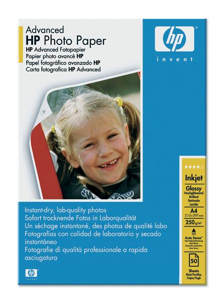 Zdokonalený fotografický papír HP Advanced Photo Paper Kompatibilní se všemi inkoustovými tiskárnami. Optimalizováno pro tiskárny HP Photosmart Pro s pigmentovými inkoustovými kazetami HP 38 s inkousty HP Vivera a řadu tiskáren Photosmart Compact Photo A