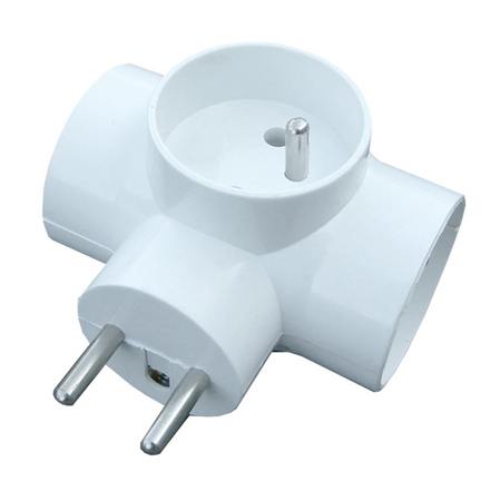 Roztrojka 230V 10A bílá, 3x kulatá zásuvka