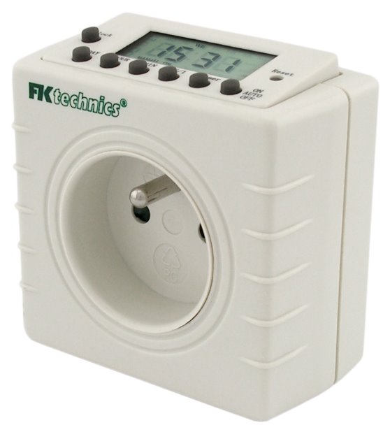 Tyto elektronické spínací hodiny s týdenním cyklem jsou vhodné do stísněných prostor, neboť vynikají minimálními rozměry. Uživatel jistě ocení též umístění displeje na horní části spínacích hodin. Displej je tudíž čitelný bez toho aby se uživatel musel ohýbat dolů k zásuvce. Vestavný akumulátor: 1,2 V NiCd.