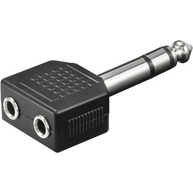 Rozdvojka pro připojení dvou audio kabelu s konektory 3,5 mm stereo jack na jeden konektor 6,3 mm stereo. Ideální např. pro připojení dvou sluchátek k MP3 přehrávači a podobně.