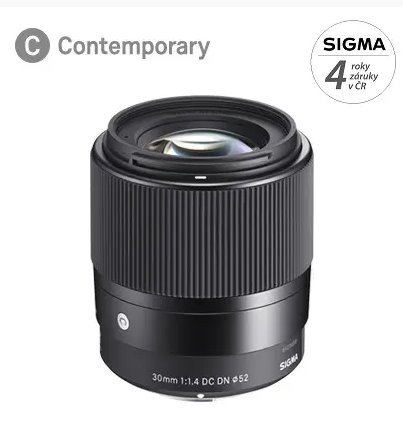 Objektiv SIGMA 30mm f/1.4 DC DN řady Contemporary nabízí špičkovou světelnost a obrazovou kvalitu v kombinaci s nízkou váhou a kompaktními rozměry. Je součástí takzvané "Malé trojky", sady objektivů světelnosti f1.4 (16mm, 30mm a 56mm), které nabízí uživateli možnost velmi kreativního vyjádření. Označení DC DN (Digital Crop - Digital NEO) předurčuje tento objektiv k použití s bezzrcadlovými fotoaparáty se snímači APS-C a MFT. Objektiv je k dispozici ve třech bajonetech pro systémy Canon M, Sony E a MFT.