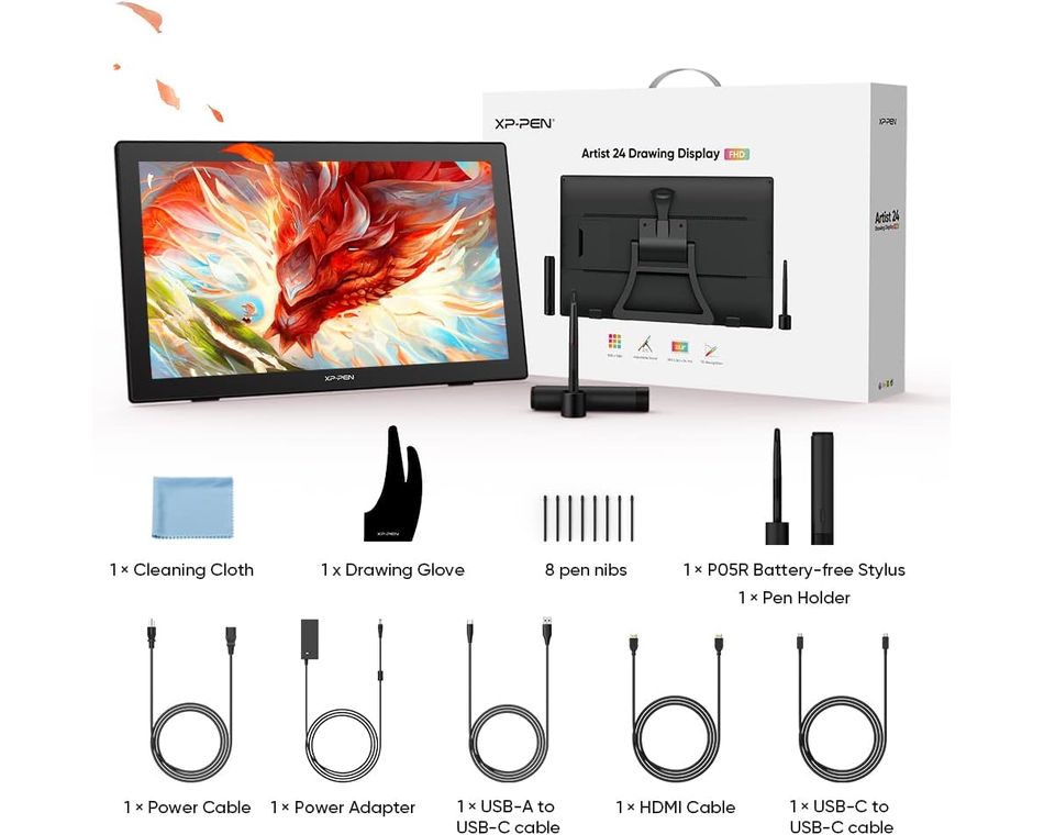 Displej je vyroben pomocí plně laminované technologie a jeho matné textury chrání proti odleskům. Přináší tak pocit kreslení na papír a zvýrazňuje každý detail výjimečné ostrosti. Díky barevnému gamutu 132 % sRGB a kontrastnímu poměru až 3000:1 přináší Artist 24 FHD přirozené barevné přechody, mimořádnou přesnost a sytost barev, které oživí vaše nejdivočejší nápady. Bezbateriový stylus P05R vám umožní soustředit se více na tvorbu bez přerušování nabíjením. 8192 úrovní citlivosti na tlak přesně určí každý tah, ať už je lehký nebo silný, a zajistí tak hladké a jemné podání čar. Díky funkci rozpoznání náklonu 60° stačí pero jednoduše naklonit a přidat svému výtvoru odstíny. S tímto nástrojem je čas vypustit svého vnitřního umělce.