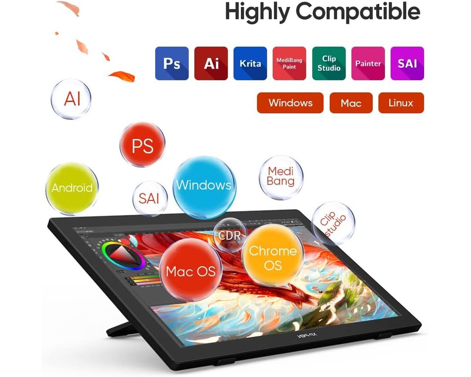 Důraz na přesnost odlišuje Artist 24 FHD od ostatních grafických tabletů na trhu. Díky inovativním technologiím je přesné sledování kurzoru ve všech rozích tabletu dostupnější než kdy dříve. Zažijte bezkonkurenční přesnost pohybu a efektivitu práce. Tablet je navíc vybaven několika USB porty, které umožňují připojení různých externích zařízení, včetně myší a klávesnic. Každý grafik si zakládá na svém oblíbeném softwaru, a aby bylo vyhověno širokému publiku, byla zajištěna kompatibilita s hlavními operačními systémy (Mac OS a Windows) a uměleckými aplikacemi, jako je Adobe Photoshop, GIMP, Blender a další. Samozřejmostí je podpora funkčních tlačítek v těchto aplikačních prostředích a možnost jejich personalizace.